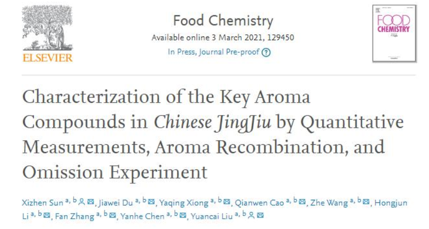 This research has not only updated our knowledge of the flavor of Chinese JingJiu and enhanced our understanding of the features of its flavor, but also provided a technical direction and data support for regulating the control points in its key production process, there for improving its quality. As an international first-tier journal, Food Chemistry, due to its high academic impact and citation frequency (ranking 6th among food journals worldwide), is especially preferred by food flavor researchers from China and aboard, such as Jiangnan University and China Agricultural University.